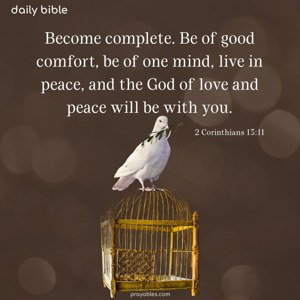 Become complete. Be of good comfort, be of one mind, live in peace, and the God of love and peace will be with you.
