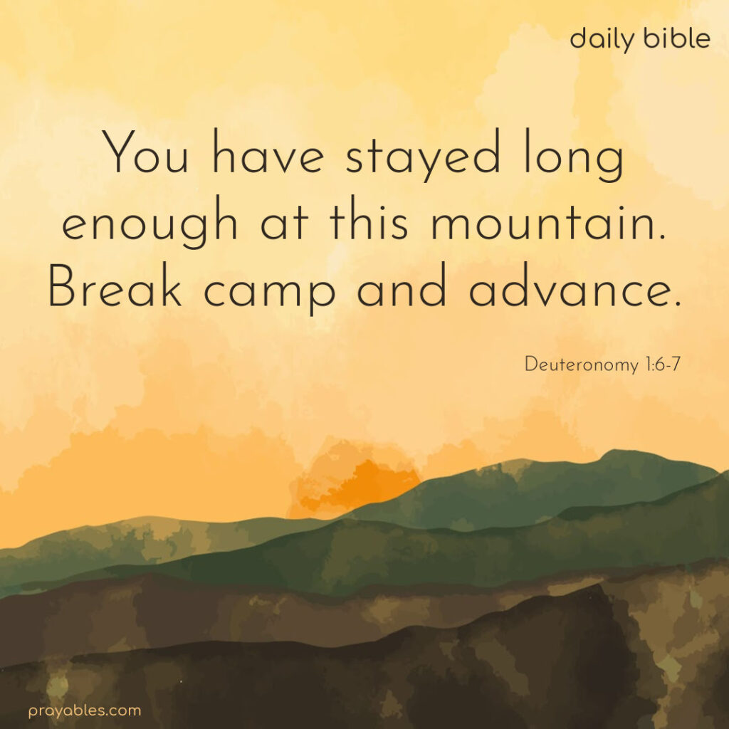 Bible: Deuteronomy 1:6-7 You have stayed long enough at this mountain. Break camp and advance. Deuteronomy 1:6-7 Print 🖨