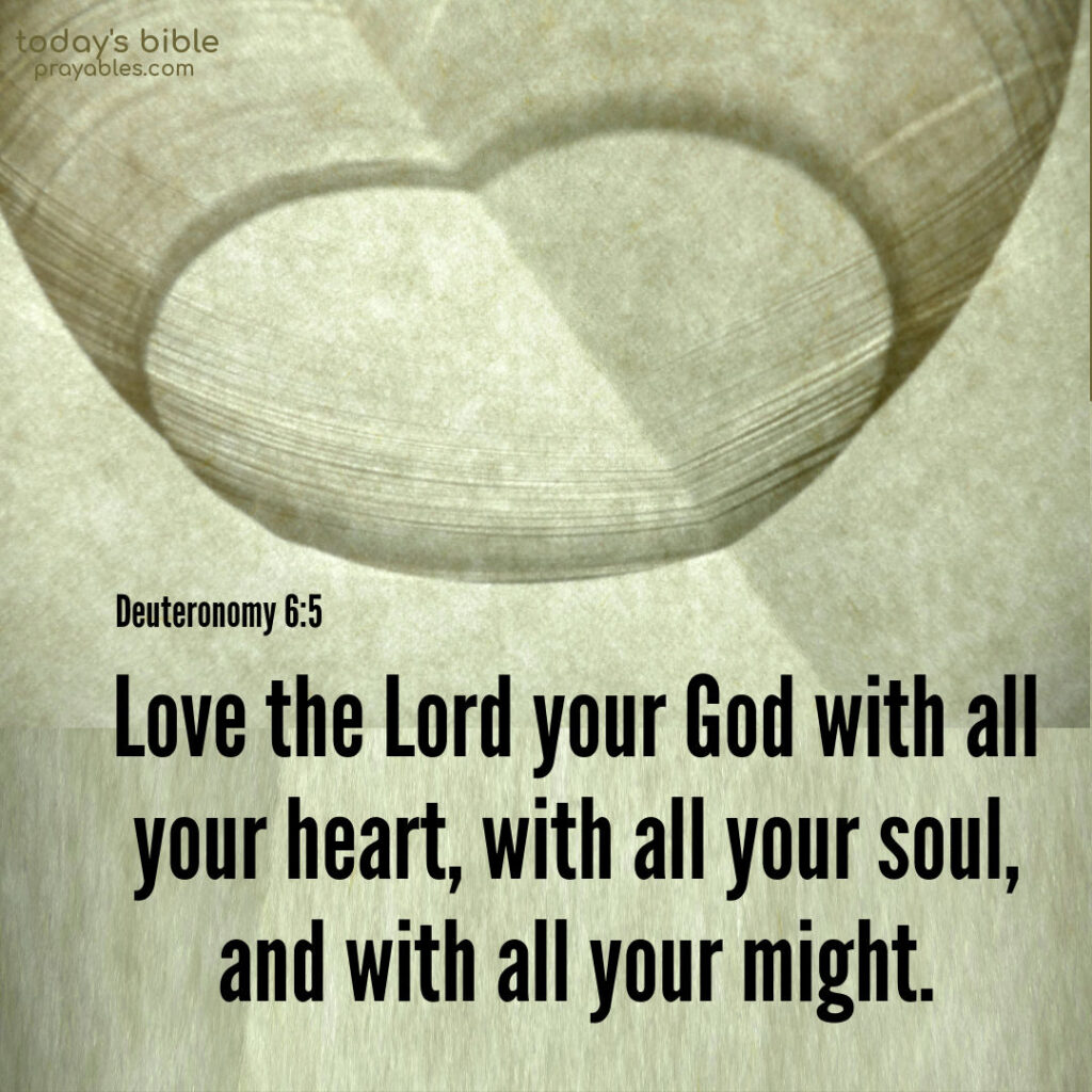 Bible: Deuteronomy 6:5 Love the Lord your God with all your heart, with all your soul, and with all your might. Deuteronomy 6:5 Print 🖨