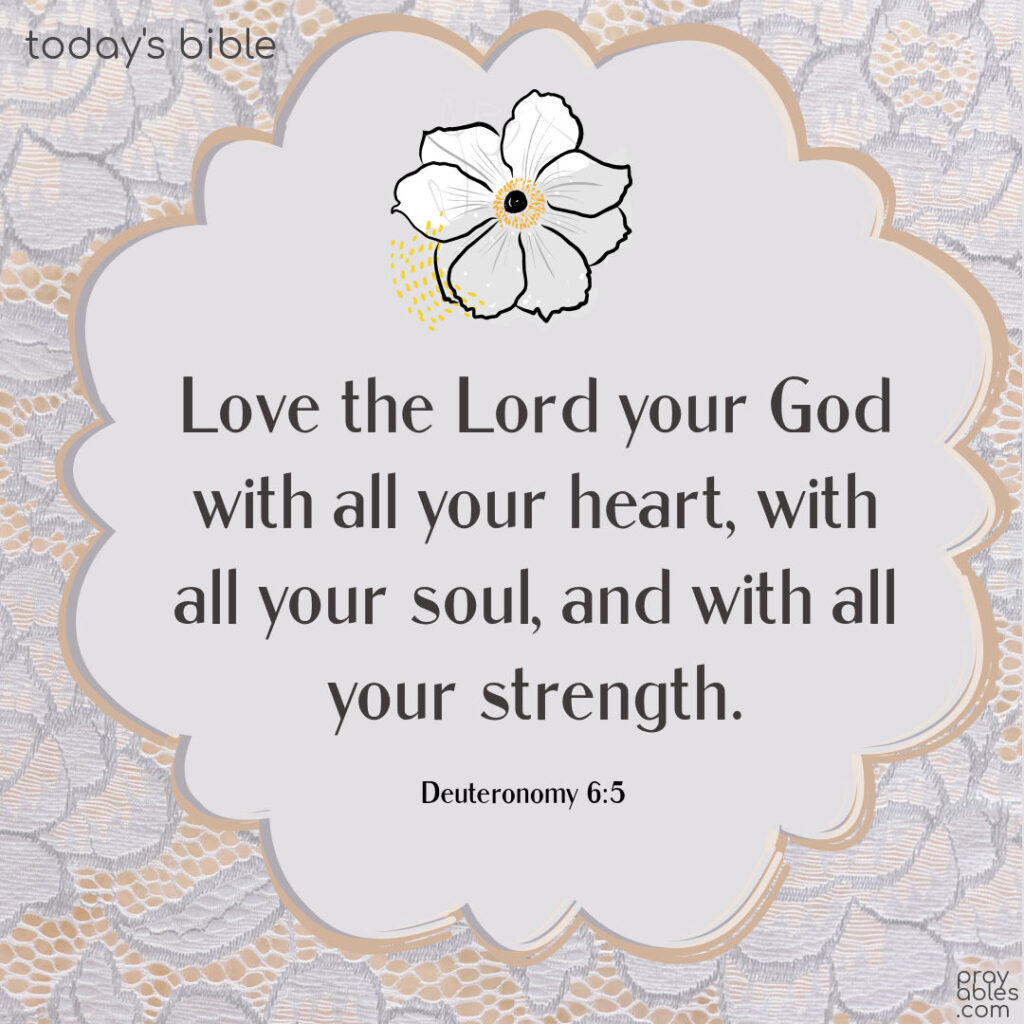 Bible: Deuteronomy 6:5 Love the Lord your God with all your heart, with all your soul, and with all your strength. Deuteronomy 6:5 Print 🖨