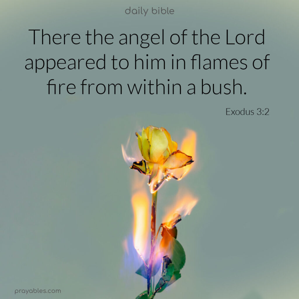 Bible: Exodus 3:2 There, the angel of the Lord appeared to him in flames of fire from within a bush. Exodus 3:2 Print 🖨