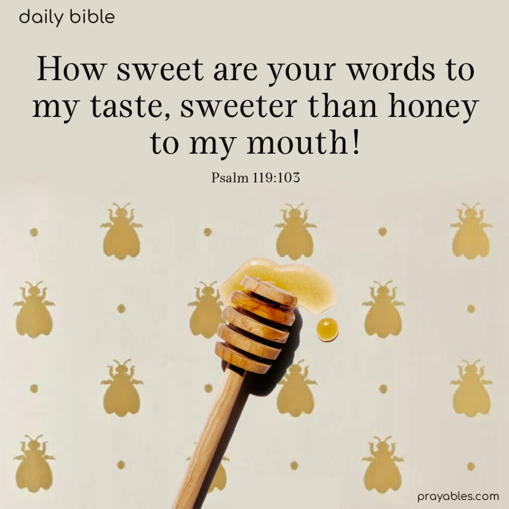 Bible: Psalm 119:103 How sweet are your words to my taste, sweeter than honey to my mouth! Psalm 119:103 Print 🖨