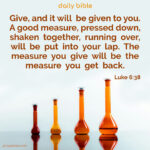 Give, and it will be given to you. A good measure, pressed down, shaken together, running over, will be put into your lap. The measure you give will be the measure you get back. Luke 6:38 … [Read more...]