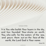 It is You who builds Your layers in the sky, and has founded Your strata with us. You, who calls for the waters of the sea, and pours them out on the face of the earth, the Lord God is Your name. Amos 9:6 … [Read more...]