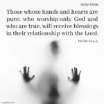 Those whose hands and hearts are pure, who worship only God and who are true, will receive blessings in their relationship with the Lord. Psalm 24:4-5 … [Read more...]