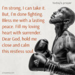 I'm strong, I can take it. But, I'm done fighting. Bless me with a lasting peace. Fill my loving heart with surrender. Dear God, hold me close and calm this restless soul. … [Read more...]