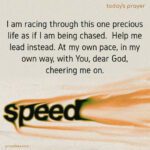 I am racing through this one precious life as if I am being chased. Help me lead instead. At my own pace, in my own way, with You, dear God, cheering me on. … [Read more...]