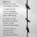 Dear God. I count by three my prayers to Thee. 1. Thank You for the life You gave, thank You for Your grace that saves. 2. Thank You for the love You show, Thank You for my love that grows. 3. Thank You for the appreciation of Your most amazing … [Read more...]