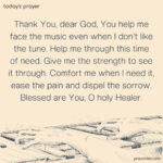 Thank You, dear God, You help me face the music even when I don't like the tune. Help me through this time of need. Give me the strength to see it through. Comfort me when I need it, ease the pain, and dispel the sorrow. Blessed are You, O holy … [Read more...]