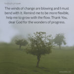 The winds of change are blowing, and I must bend with it. Remind me to be more flexible, help me to grow with the flow. Thank You, dear God for the wonders of progress. … [Read more...]