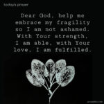 Dear God, help me embrace my fragility so I am not ashamed. With Your strength, I am able. With Your love, I am fulfilled. … [Read more...]
