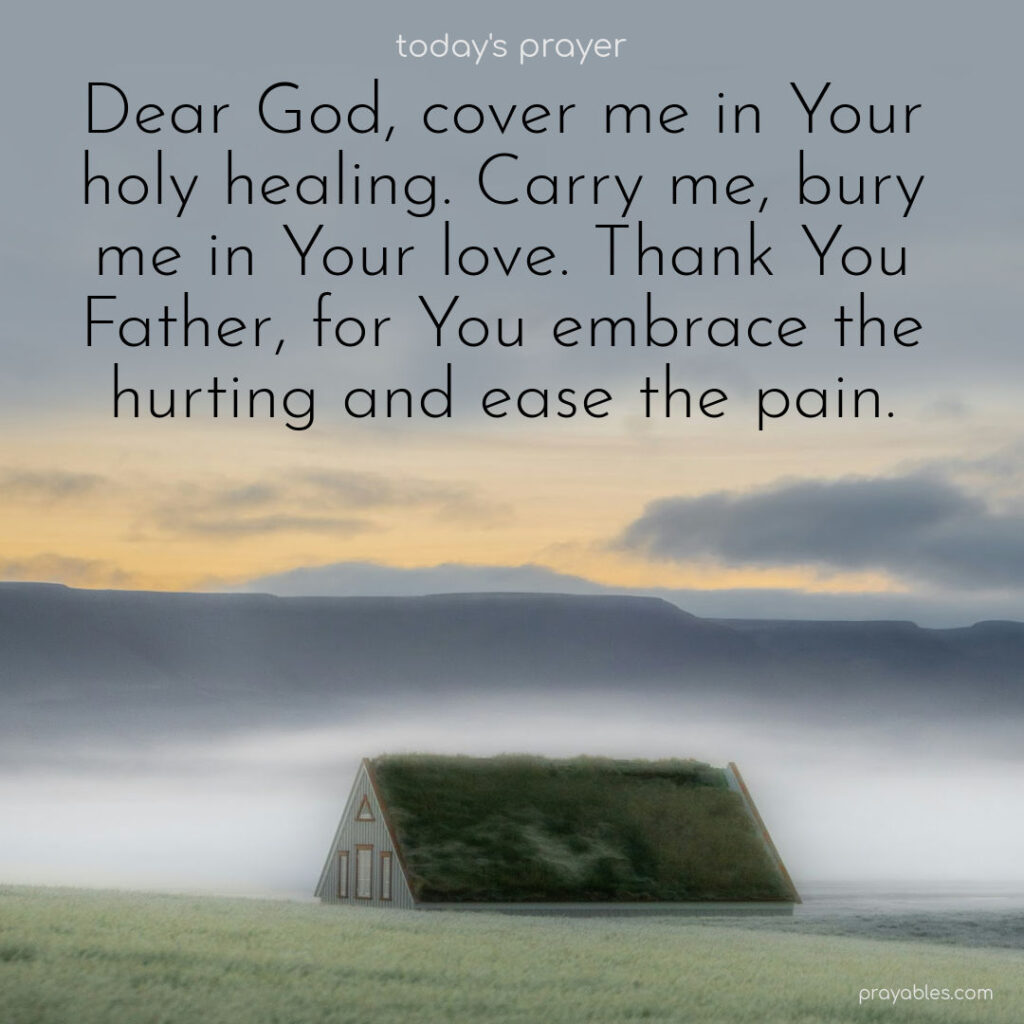 Prayer: Hurting and Healing Dear God, cover me in Your holy healing. Carry me, bury me in Your love. Thank You, Father, for You embrace the hurting and ease the pain. Print 🖨