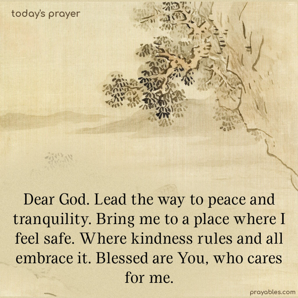 Dear God. Lead the way to peace and tranquility. Bring me to a place where I feel safe. Where kindness rules and all embrace it. Blessed are You, who cares for me.